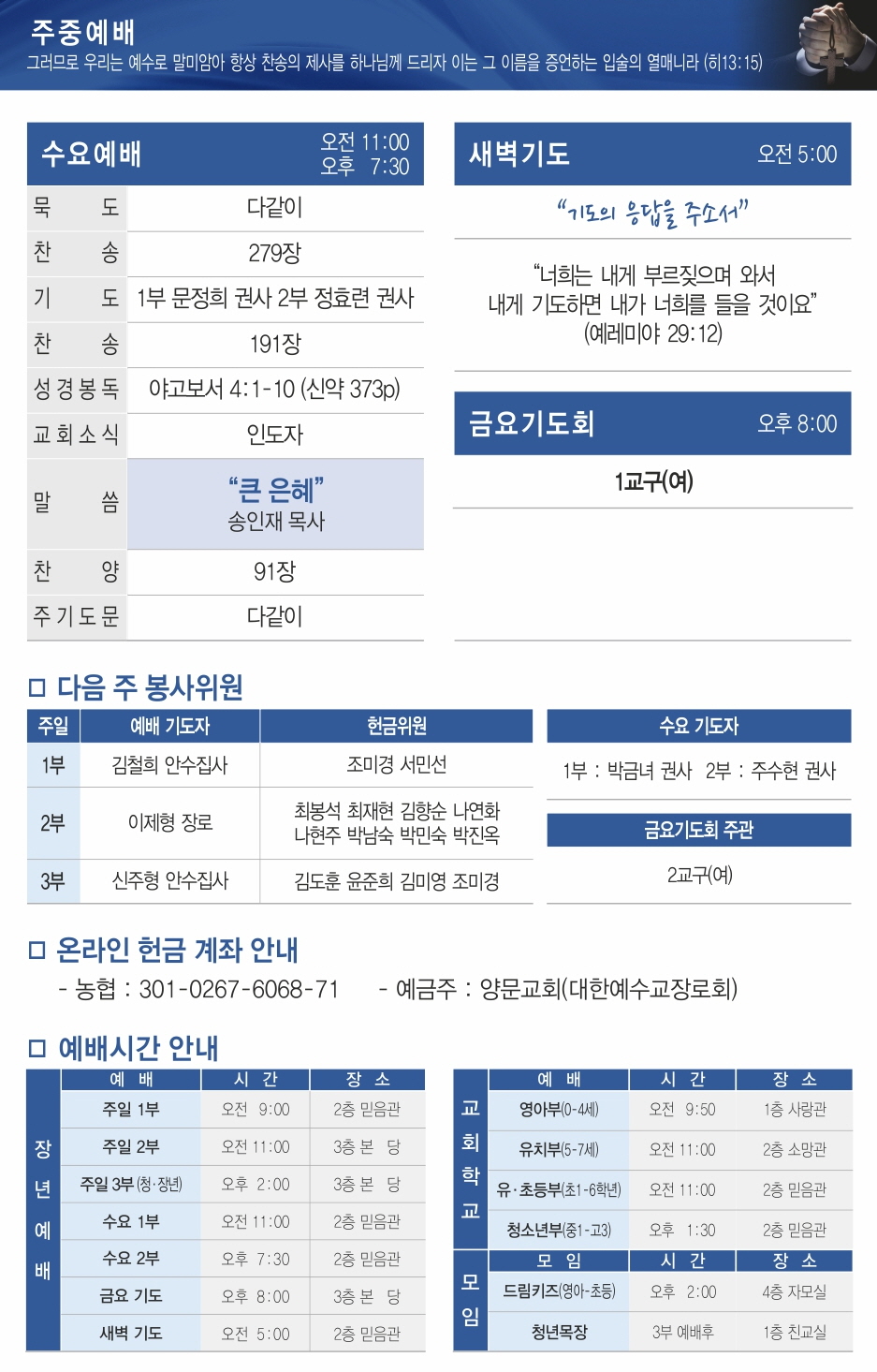 예배시간안내