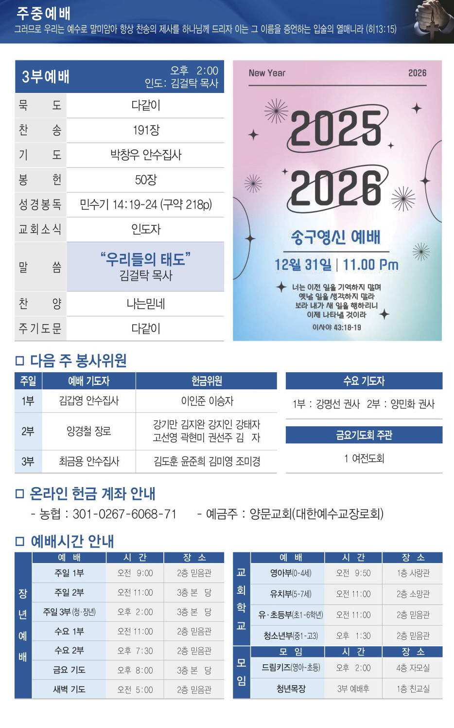 2025년 12월 28일 주일 주보
