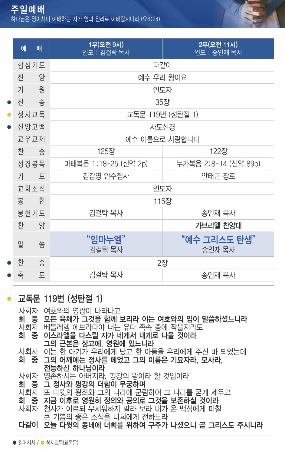 예배시간안내