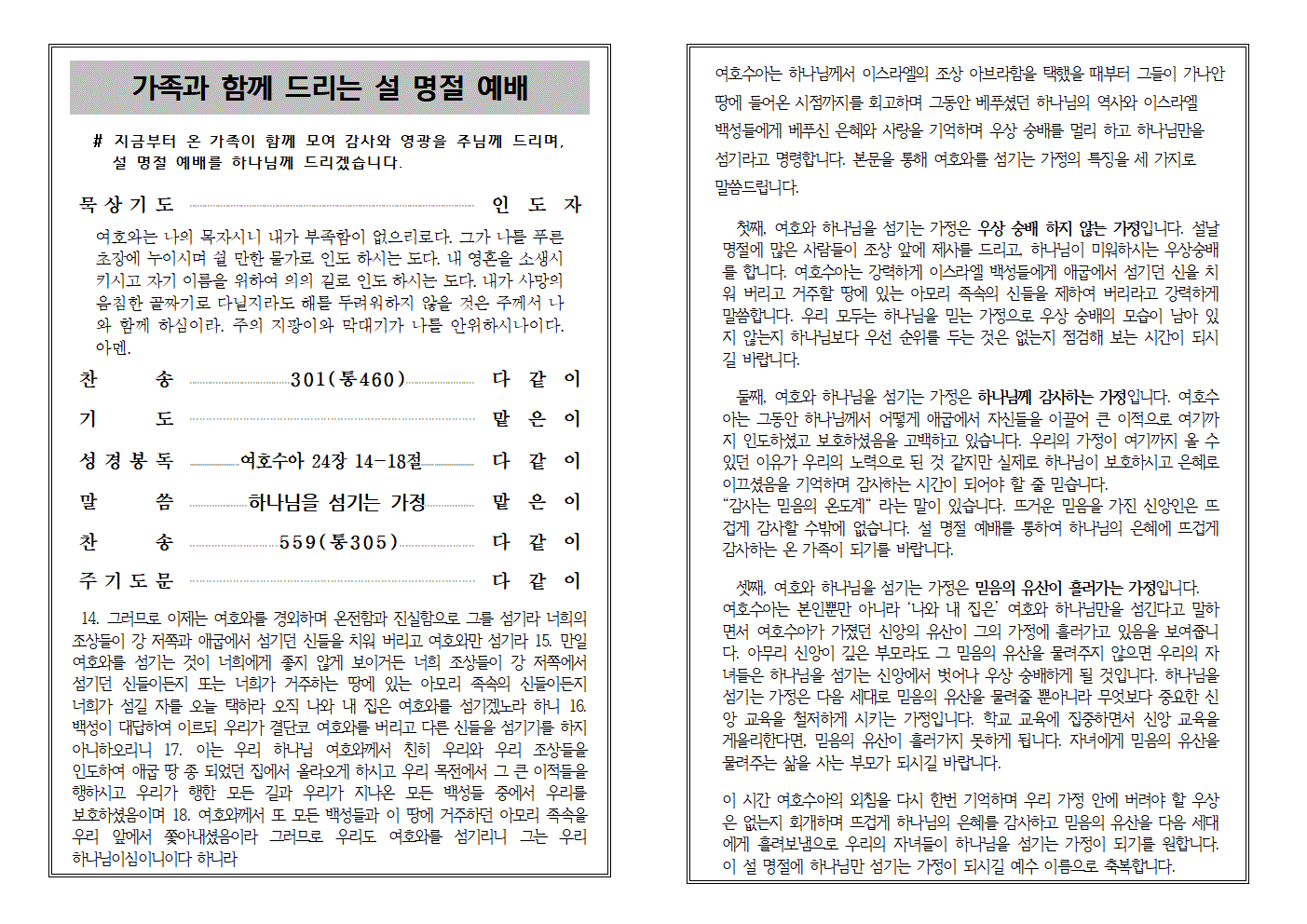 2026년 양문교회 설명절 예배순서지